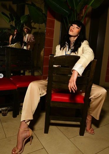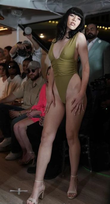 HEIGHT 5'10'' HAIR COLOR BLACK EYES BLUE BUST 35'' WAIST 24" HIPS 34'' SHOES 10
